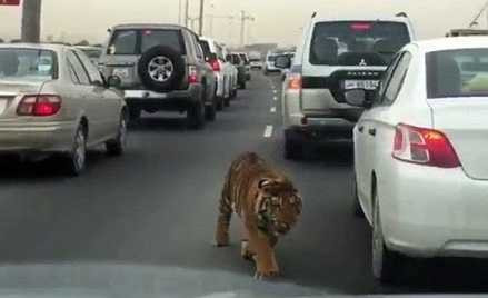 Con hổ lớn “hồn nhiên” len lách qua dàn xe trên một con đường đông đúc ở thủ đô Doha, Qatar khiến những người tham gia giao thông một phen sửng sốt.