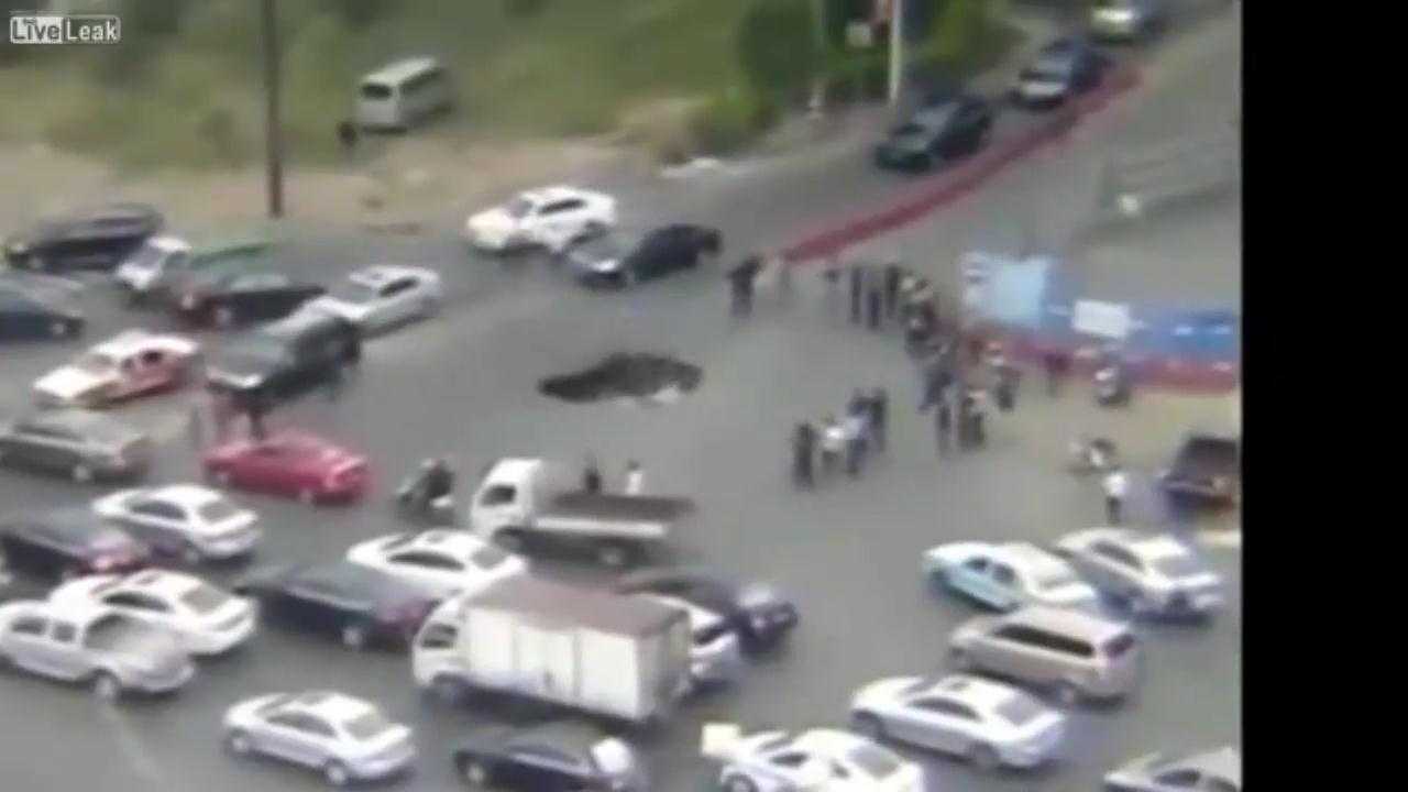 Clip: Hố tử thần đột ngột xuất hiện giữa ngã tư nuốt trọn ôtô