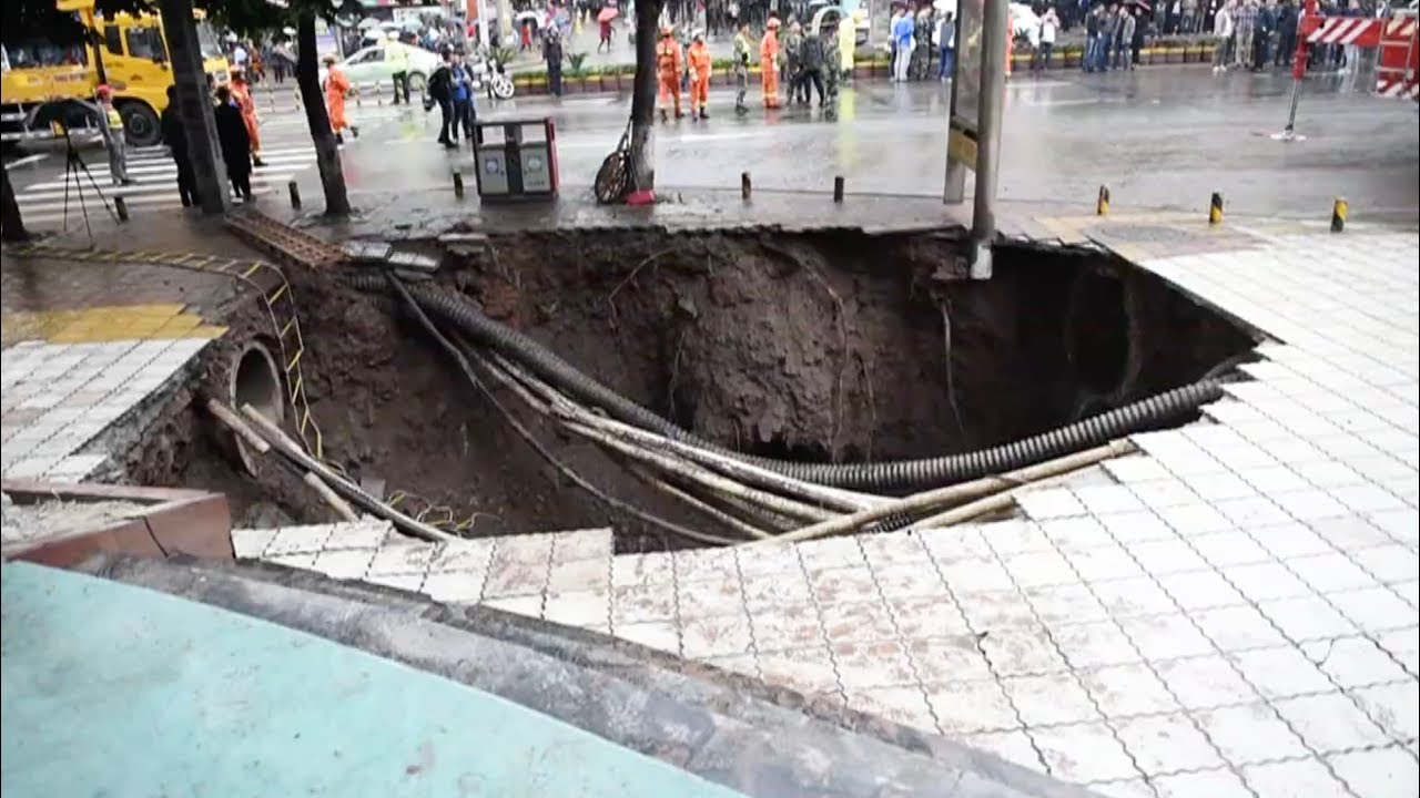 Sự việc xảy ra tại TP Đạt Châu, tỉnh Tứ Xuyên, Trung Quốc vào khoảng 2h30 sáng 7/10 (giờ địa phương). Trong quá trình giải cứu, chiếc hố lại sụt xuống thêm lần nữa.