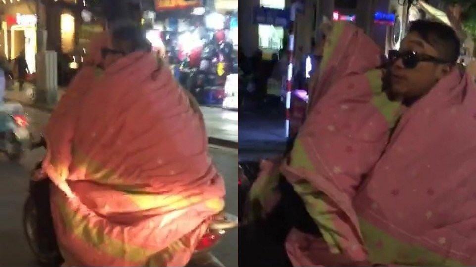 Bên cạnh những bình luận hài hước về cách chống rét sáng tạo có một không hai của các nam thanh niên, nhiều cư dân mạng cũng cho rằng "quấn chăn đi xe máy" là hành động nguy hiểm bởi chăn có thể mắc vào bánh xe và gây tai nạn, hơn nữa, cả 2 người đều không đội mũ bảo hiểm.