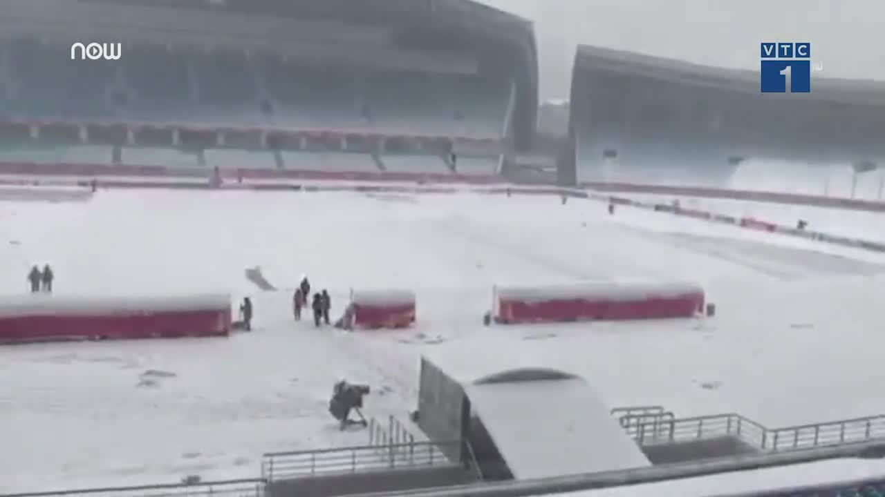 Ban tổ chức giải U23 châu Á đang cho nhân viên dọn dẹp tuyết trên sân vận động Thường Châu (Trung Quốc), nơi diễn ra trận chung kết U23 Việt Nam vs U23 Uzbekistan.