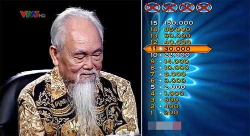 Sốt xình xịch phần thi Ai là triệu phú của cụ ông 78: Cụ ông Đặng Thiêm (78 tuổi, người Hà Nội) đã xuất sắc vượt qua câu hỏi số 11 của chương trình Ai là triệu phú và giành được số tiền thưởng lên tới 30 triệu đồng.
