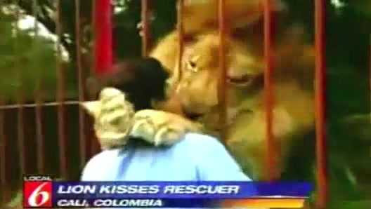 (VTC News) - Clip ghi lại cảnh một chú sư tử, loài vật vốn được coi là hung dữ ôm hôn thắm thiết một người phụ nữ, ân nhân đã cứu mạng của chú.