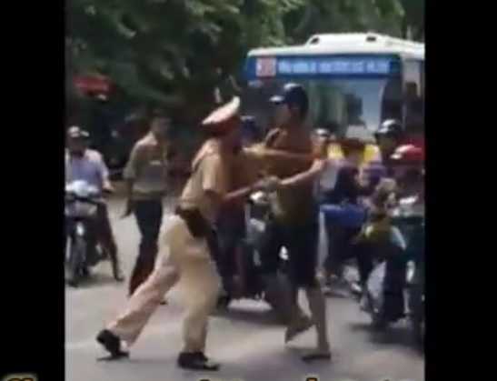 Sự việc buộc CSGT phải cưỡng chế giải quyết theo quy định. Sự việc xảy ra tại ngã tư Phố Huế, Bạch Mai, Hà Nội.
