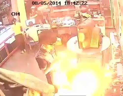 (VTC News) - Chiếc điện thoại iPhone 5s đặt trên ghế đỏ, người thanh niên ngồi cặm cụi sấy thì bất ngờ phát nổ.