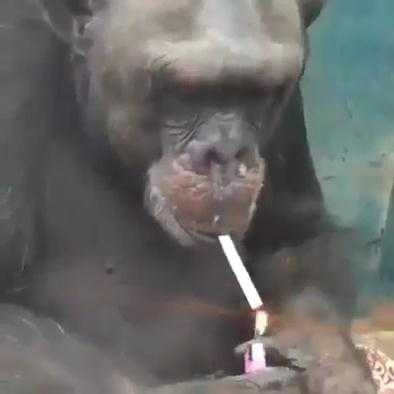 Clip: Khỉ châm lửa hút thuốc cực ‘bá đạo’