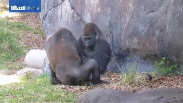 (VTC News) - Những du khách đến vườn quốc gia Busch Gardens ở Tampa, Florida, Mỹ không khỏi ngạc nhiên vì những hành động của 2 con khỉ đột.