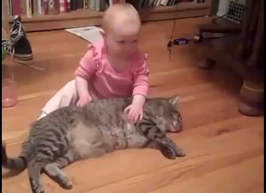 (VTC News) - Chú mèo ú đáng yêu chỉ còn cách nằm im khi bị em bé nghịch ngợm, nô đùa vần vò.