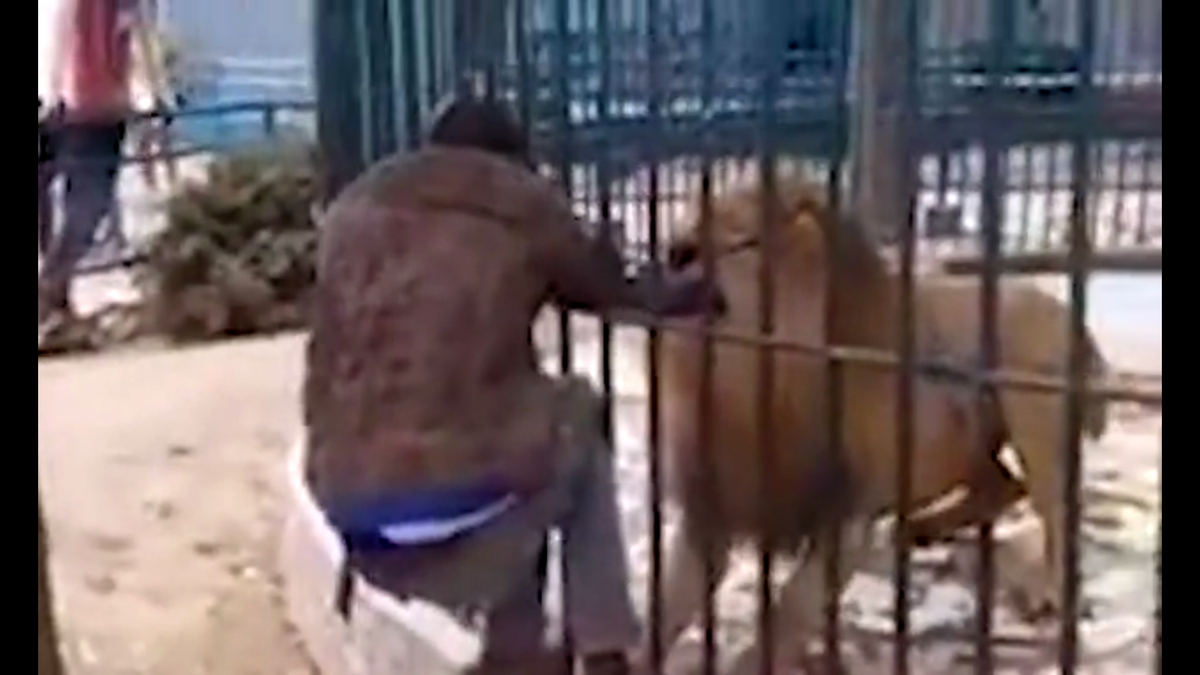 Clip: Khiêu khích sư tử, người đàn ông suýt bị cắn đứt tay