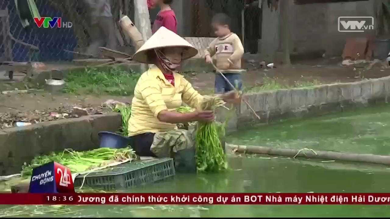 Hình ảnh người dân tại huyện Yên Mỹ, Hưng Yên rửa rau dưới dòng nước thải có dấu hiệu ô nhiễm, trong đó có nhiều vỏ thuốc trừ sâu khiến dư luận lo lắng.