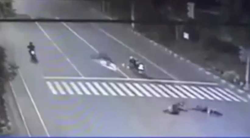 (VTC News) - Chiếc xe máy vượt đèn đỏ phóng nhanh nên lao thẳng vào một chiếc xe máy khác đi ngược chiều khiến cả xe và người văng đi một đoạn khá xa.