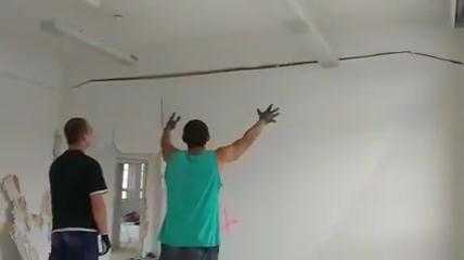 Bức tường mỏng manh vẫn trơ trơ dù đã bị rung lắc dữ dội, chỉ đến khi một trong 2 người đàn ông cất tiếng hét, bức tường mới chịu đổ sập.