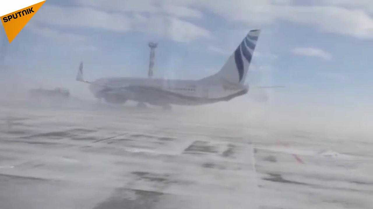 Sức gió khủng khiếp ở thành phố Norilsk, Nga khiến chiếc máy bay Boeing 737 quay trọn một vòng như chong chóng.