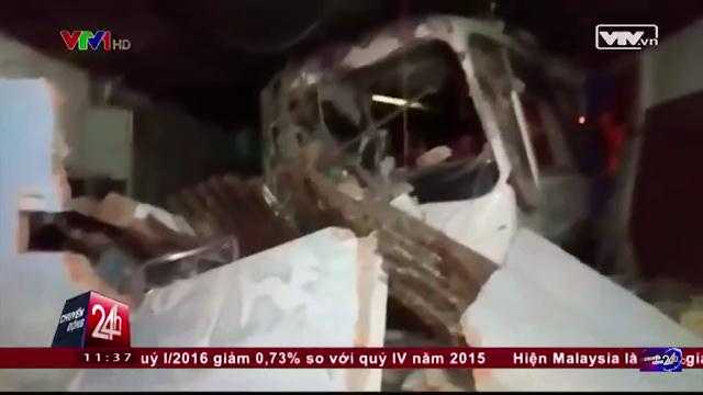 Clip: Kinh hoàng ôtô khách đâm sập hai nhà ven đường