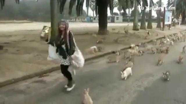 Clip: Kỳ lạ hàng trăm chú thỏ truy đuổi một thiếu nữ