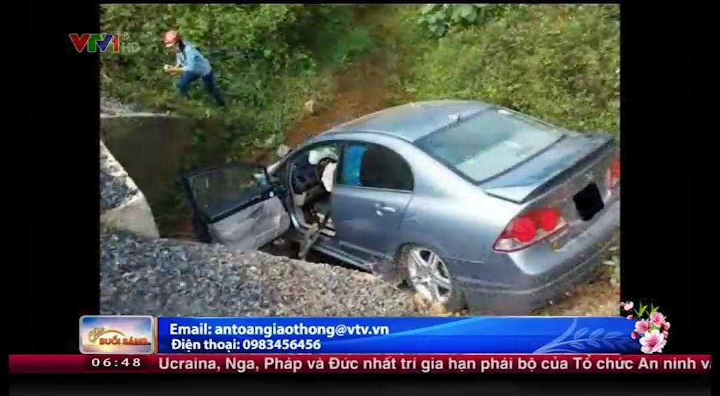 Một chiếc Honda Civic đang xuống đèo Chuối (Đà Lạt, Lâm Đồng), bất ngờ lao thẳng xuống cống thoát nước ven đường.