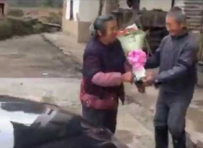 Vẻ bẽn lẽn của lão nông khi lần đầu trong đời tặng hoa cho vợ cùng phản ứng hồn hậu, chân chất của cụ bà khiến cộng đồng mạng tan chảy vì quá dễ thương.