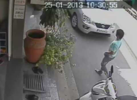 Tên cướp trẻ phục sẵn trước tiệm điện thoại. Hắn đi đi lại lại, hết gọi điện thoại rồi lại ngồi rình rập. Ngay lúc cô gái đang đếm tiền, hắn lao ra từ sau lùm cây...