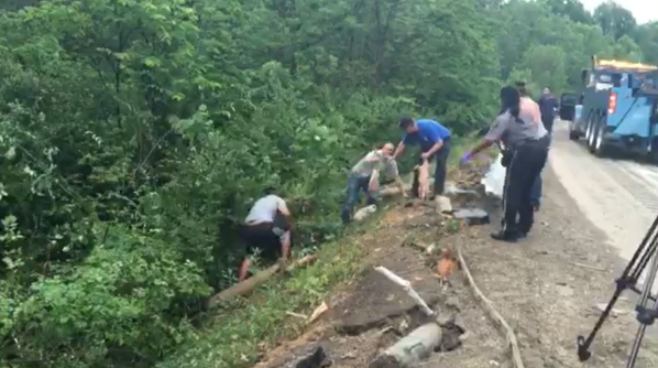 (VTC News) - Khoảng 2.200 con lợn đã xổng ra và tháo chạy tán loạn trên đường cao tốc ở bang Ohio (Mỹ) sau khi chiếc xe tải bị lật do tài xế mất lái hôm 8/6.