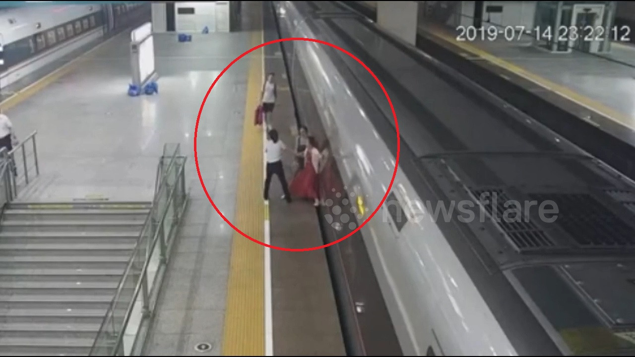 Vì lỡ chuyến tàu, nữ hành khách Trung Quốc trèo qua cửa soát vé, sau đó đút chân xuống đường ray để ngăn tàu chạy.