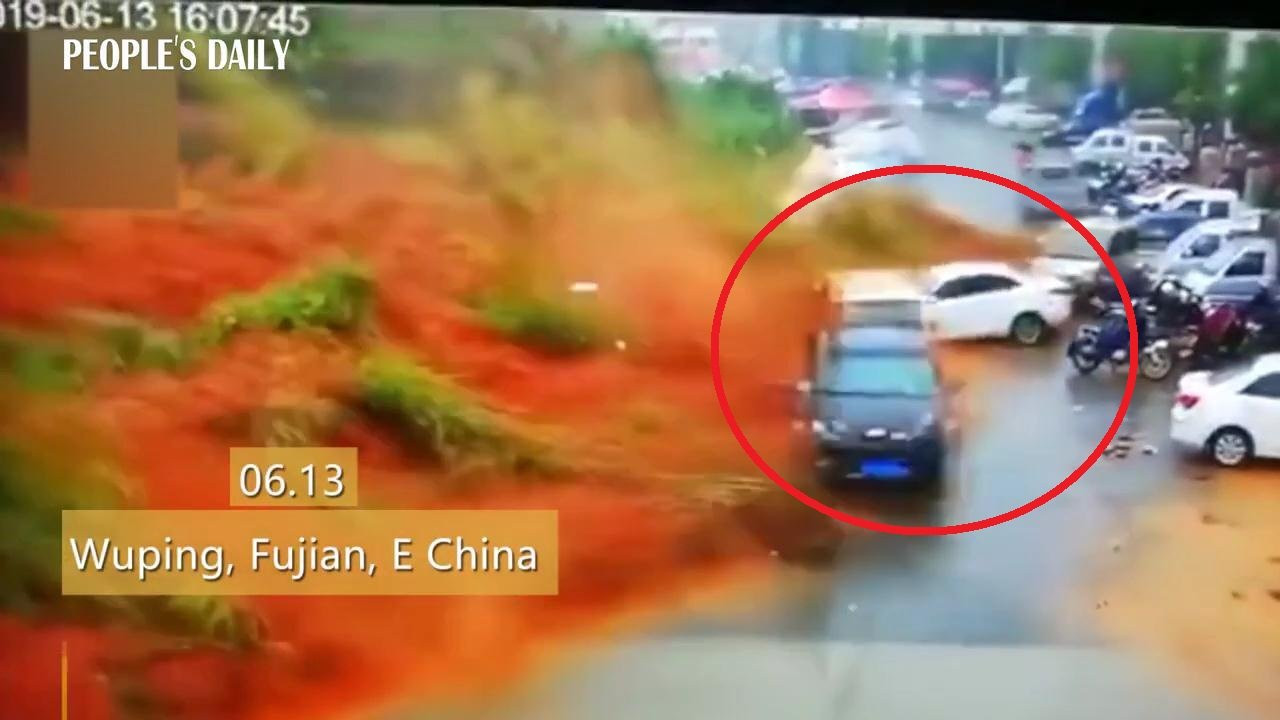 Camera giám sát ghi lại khoảnh khắc sạt lở đất kinh hoàng, cuốn phăng hàng chục ô tô ở tỉnh Phúc Kiến, Trung Quốc ngày 13/6.