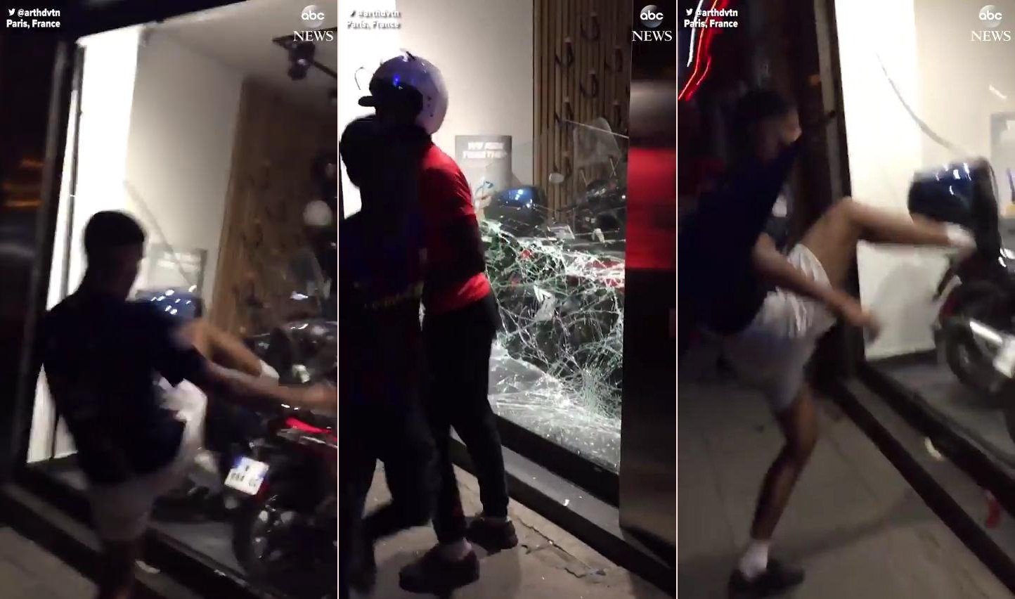 Lợi dụng ăn mừng Pháp vô địch World Cup 2018, nhiều CĐV quá khích đập vỡ kính cửa hàng ở Paris, cướp đi nhiều xe máy và các thiết bị khác.