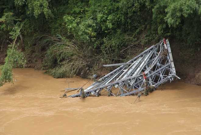Cây cầu được đầu tư hơn 20 tỷ đồng và được đưa vào sử dụng cách đây khoảng hơn ba tháng bắc qua sông Mã ở xã Thanh Xuân, huyện Quan Hóa (Thanh Hóa) bị lũ cuốn.