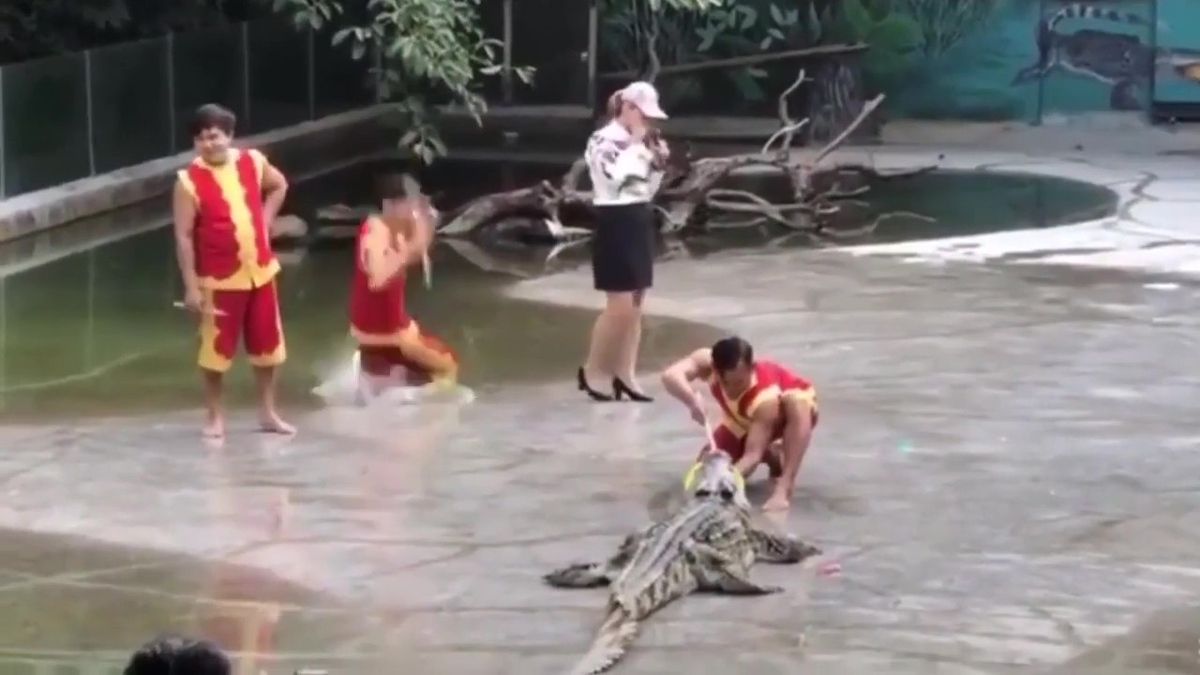 Clip: Lý do 'củ chuối' khiến nghệ sĩ diễn xiếc với cá sấu vùng chạy