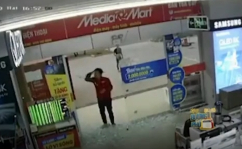 Mải cắm mặt vào điện thoại, chàng trai đâm sầm vào cửa kính khiến nó vỡ tan, kính rơi lả tả trên người anh chàng.
