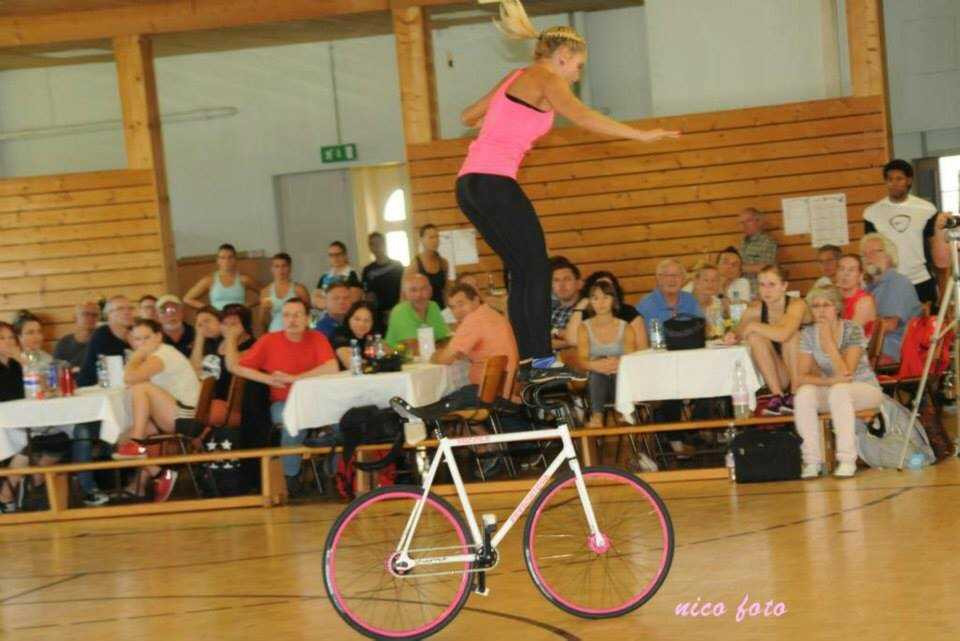 Cô gái tài năng thực hiện màn trình diễn đi xe đạp ấn tượng với nhiều động tác cực khó khiến người xem trầm trồ thán phục.