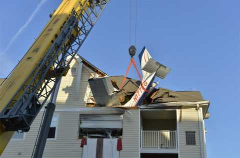 Một chiếc máy bay Cessa, được tin là cất cánh từ sân bay Đông Bắc Philadelphia, đã đâm thủng mái của căn nhà trên. Đuôi của máy bay thò ra ngoài mái và một cửa sổ của ngôi nhà có vẻ cũng bị đâm nát.