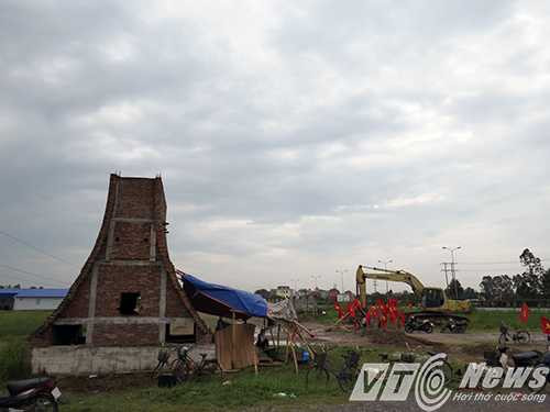 Khi máy xúc tiến vào cũng là lúc những người lạ mặt này lao đến nhổ hết cờ Tổ quốc người dân đã cắm trước đó. Chiếc máy xúc cứ tiến vào lại lùi ra và một số người lạ mặt đe dọa nếu không tránh ra máy xúc sẽ cán chết. Tuy nhiên người dân không kiên quyết đứng chặn đầu máy xúc không cho tiến vào.