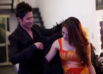 | Huy Khánh ân cần lau vết son trên mặt cho Hương Giang ngay trên sân khấu Vietnam Idol |