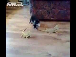 (VTC News)- Chú mèo định ra oai, bắt nạt lũ kỳ nhông nhưng không ngờ lại bị doạ khiếp vía, chạy trối chết thoát thân.