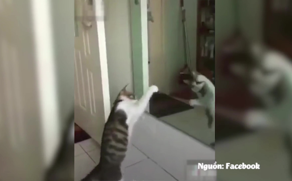 Clip: Mèo 'cà khịa' với bóng mình trong gương