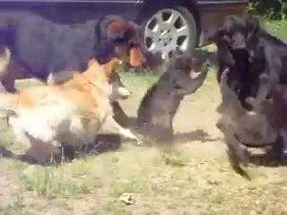 (VTC News) - Cuộc đại chiến nảy lửa giữa hai chú mèo đen chỉ dừng lại khi có sự can thiệp của những chú chó.