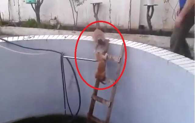 Chú mèo láu cá giơ chân định đẩy ngã bạn nhưng không ngờ lại khiến chính mình mất thăng bằng, rơi tõm xuống giếng.