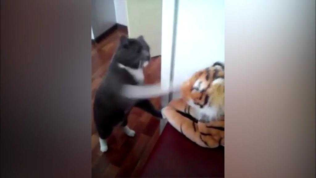 (VTC News) - Không hiểu chú mèo này có thù oán gì với chúa sơn lâm nhồi bông mà lại ra tay không thương tiếc như vậy.