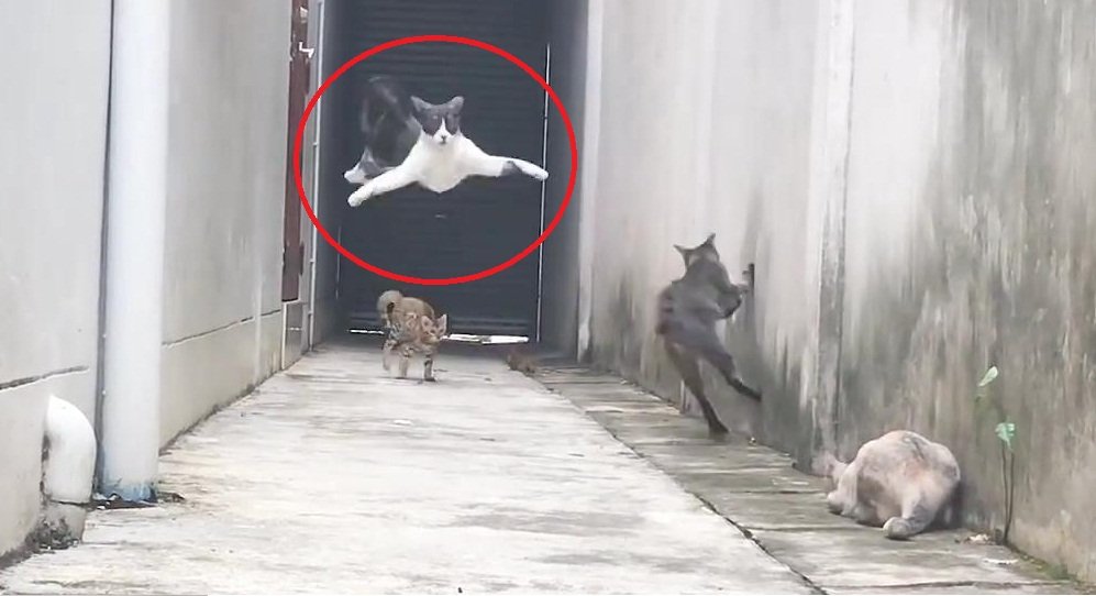 09/05/2018 16:02:00 +07:00Mèo tung mình, phi thân liên tục để thoát "thiên la địa võng" do đồng loại giăng ra ngoạn mục khiến người xem vừa hồi hộp, vừa bật cười thích thú.