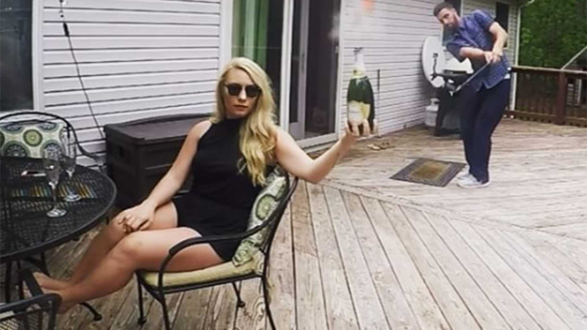 Chỉ với một cú đánh golf duy nhất, chàng trai đã mở thành công chai rượu vang cho người bạn gái.
