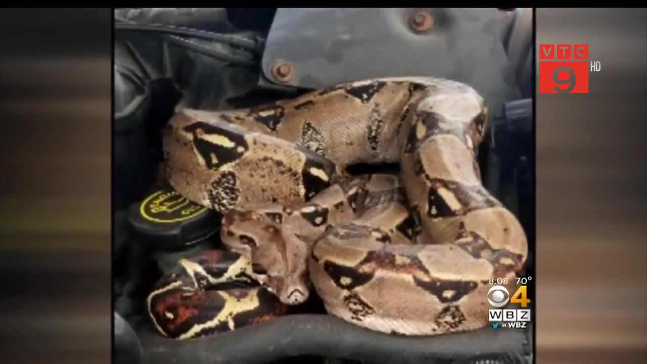Vừa mở mui ô tô, nam tài xế ở Mỹ đã một phen sợ hãi đến đứng tim khi phát hiện con trăn Nam Mỹ cuộn tròn trên động cơ xe của mình.