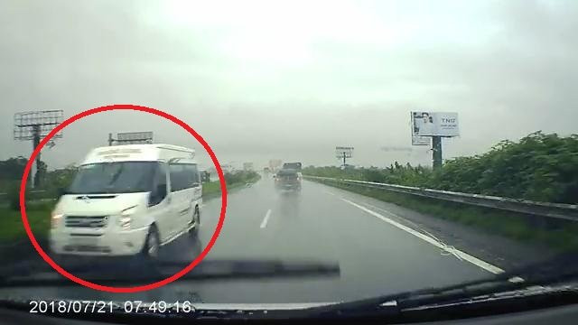 Camera hành trình ghi lại hình ảnh ô tô du lịch liều lĩnh chạy ngược chiều vào làn trái cao tốc Hà Nội - Bắc Giang sáng 21/7 giữa trời mưa gió, tầm nhìn hạn chế khiến người xem hoảng hồn vì quá nguy hiểm.