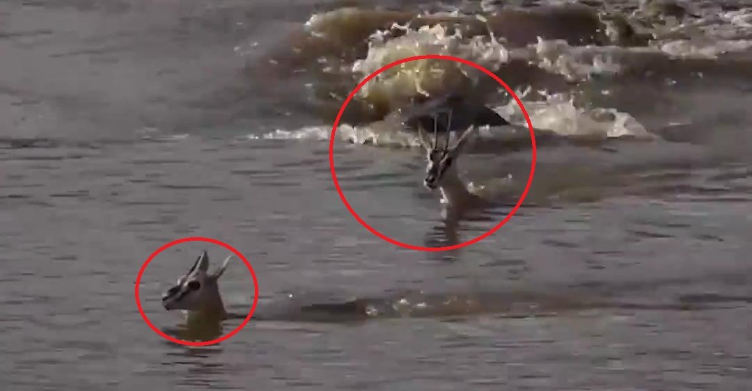 Thấy cá sấu rình rập từ xa, nai mẹ liền lao ra giữa sông, hy sinh thân mình để nai con qua sông an toàn.