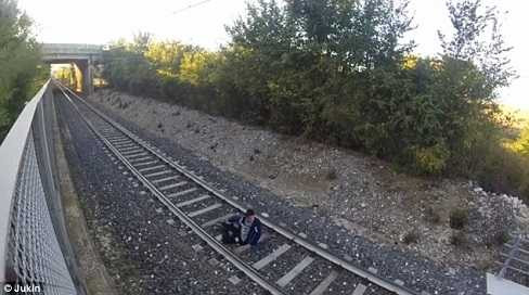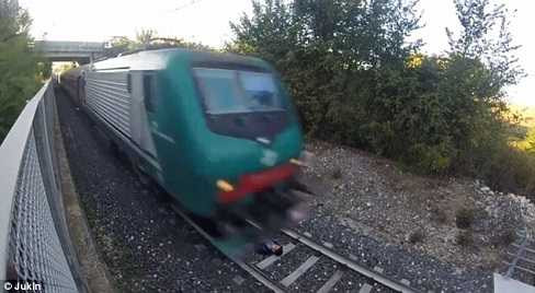 (VTC News) - Một nam thanh niên đã nằm giữa đường ray để tàu chạy qua không khỏi khiến người xem thót tim.