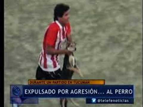 Tuy nhiên, thay vì dùng biện pháp nhẹ nhàng, cầu thủ Jose Jimenez của Bella Vista lại nắm chặt cổ chú chó và quăng một cách tàn bạo ra ngoài.