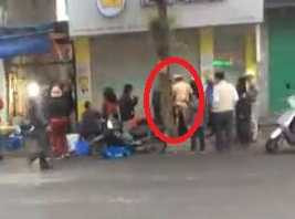 Khi nghe tiếng người dân hô cướp, một chiến sĩ CSGT gần đó phản ứng rất nhanh, lao về phía tên cướp lúc này đang phi xe lên vỉa hè do đường đông. Kết quả là tên cướp đã bị chiến sĩ này tóm gọn.