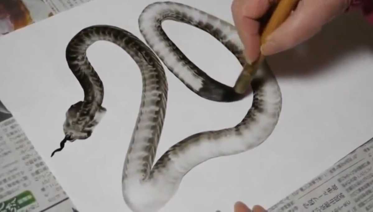 Clip: Nghệ sĩ tài năng vẽ rắn như thật chỉ bằng một nét