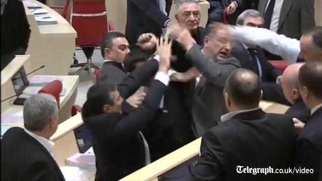 Tại cuộc họp quốc hội ngày 26/12, các nghị sĩ Gruzia chửi bới rồi xông vào nhau thượng cẳng tay hạ cẳng chân, khiến nhân viên an ninh phải can thiệp.