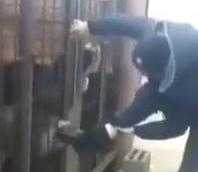 Chàng trai đứng ngoài trêu lũ chó trong chuồng nhưng không may bị nó cắn mất giày.