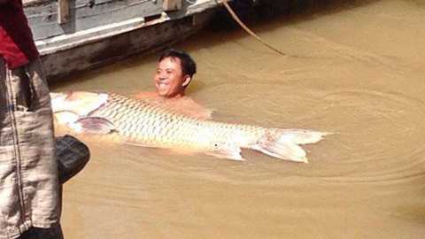 17/11/2016 10:59:00 +07:00Ngày 15/11, anh Nguyễn Văn Nghĩa ( 40 tuổi, ngụ xã An Phước, huyện Mang Thít, tỉnh Vĩnh Long) đi ghe cào lưới cá trên sông Cổ Chiên đã bắt được con cá hô vàng nặng 125,5 kg dài khoảng 1,5 mét được trả giá 314 triệu đồng.